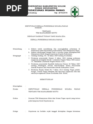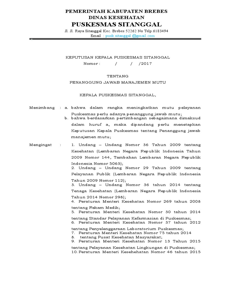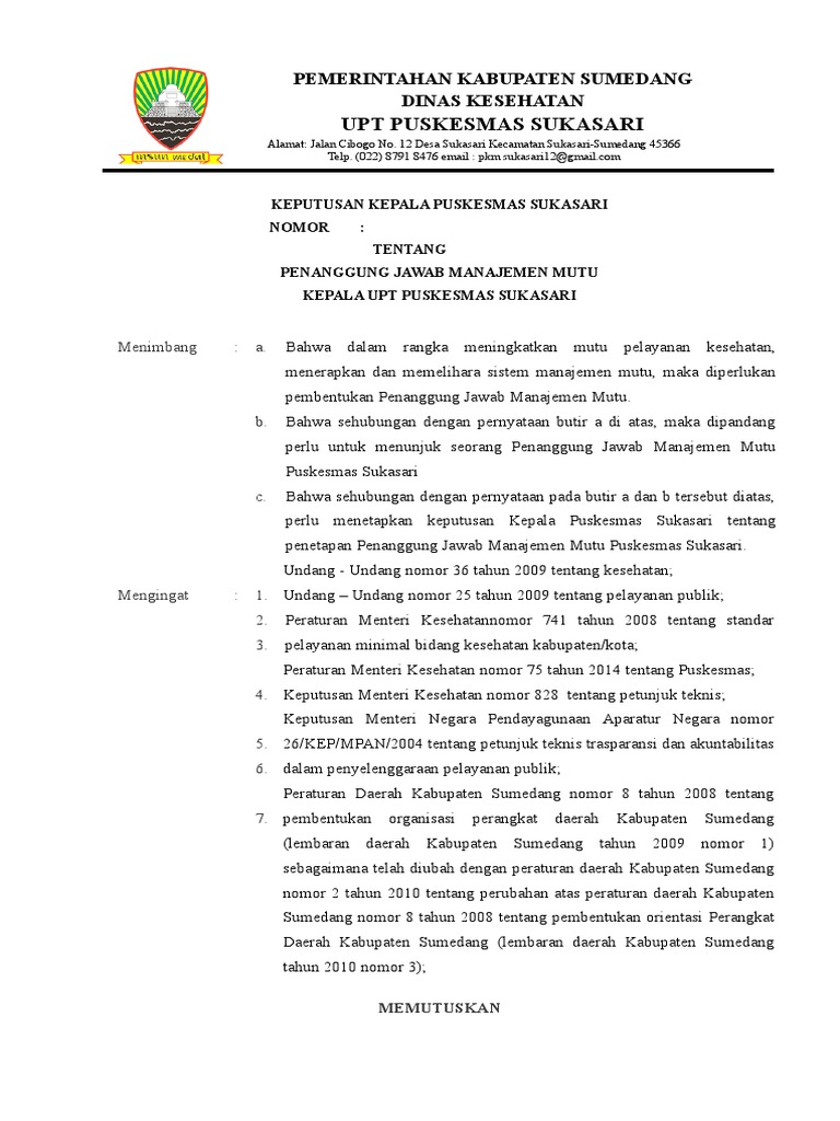 Contoh sk penanggung jawab manajemen mutu. Check spelling or type a new query. We did not find results for: Maybe you would like to learn more about one of these?