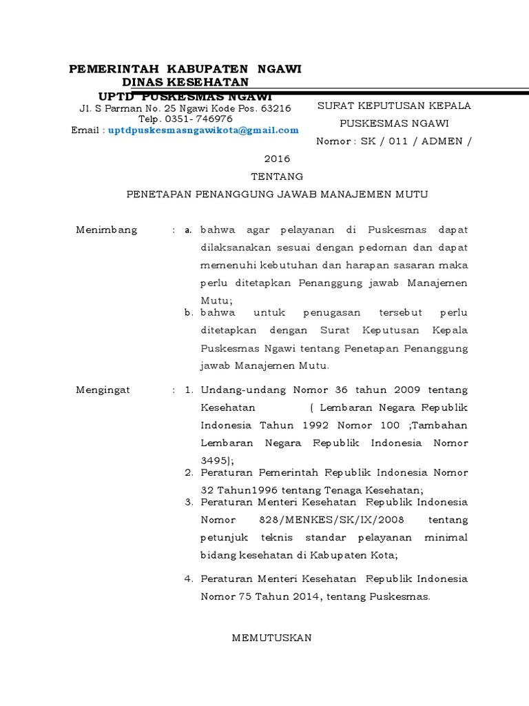 Contoh sk penanggung jawab manajemen mutu. We did not find results for: Check spelling or type a new query. Maybe you would like to learn more about one of these?