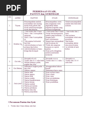 Persamaan pantun, syair, dan gurindam. Kali ini pakdosen akan membahas tentang pantun dan syair? Secara ringkas persamaan pantun, syair, seloka dan gurindam adalah dikenali sebagai puisi melayu tradsional atau puisi lama/klasik. Gurindam adalah puisi lama (melayu) yang sangat penting sebagai warisan budaya. Persamaan pantun syair dan gurindam yaitu sebagai berikut.