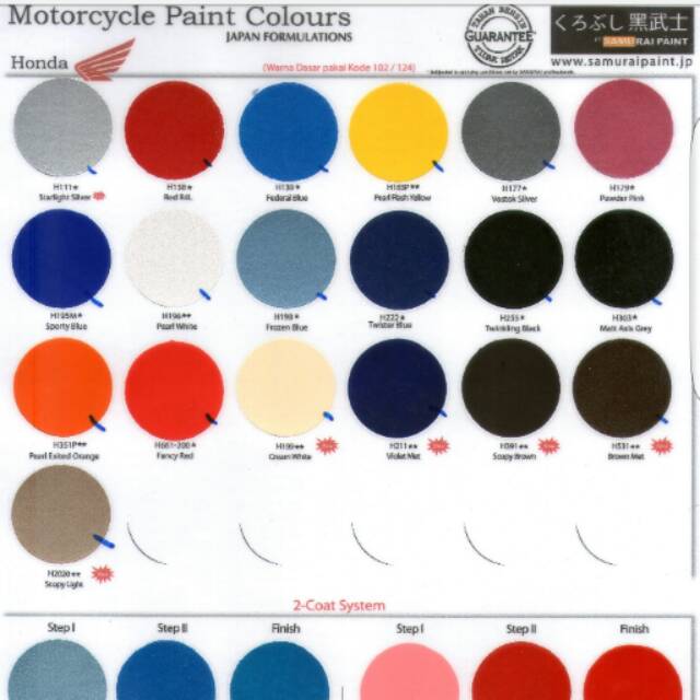 Jenis warna cat motor cat motor vario 125 merk cat motor honda harga cat motor honda 39 terpopuler katalog warna cat motor warna cat. Toko2 yg jual cat samurai dibanjarmasin dan banjar baru sbb : Katalog warna cat semprot samurai dan harga warna cat. 53 warna cat samurai sumber : Katalog warna cat semprot samurai paint sumber .